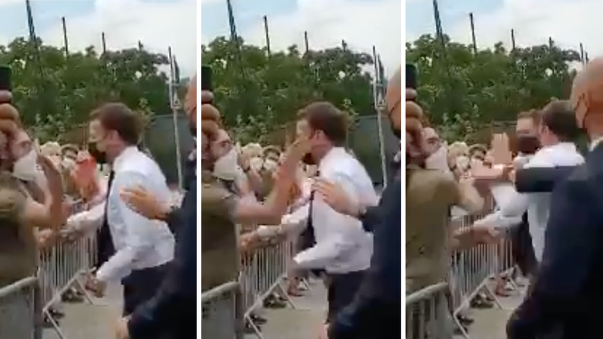 Macron rakk ikke å reager før hånden traff kinnet. Han ble raskt ført bort av security. Macron se dirigía al centro de la ciudad de valence para almorzar en la terraza de un restaurante. « monsieur le président macron pensez à nous ! La vidéo, authentifiée, circule sur les réseaux sociaux.